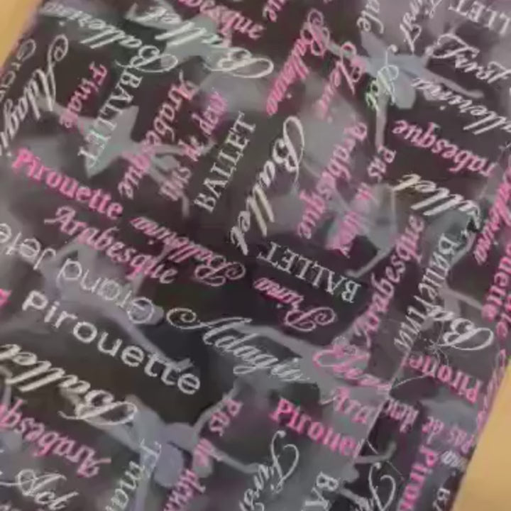 Pearl Ballet Words Pink/Black - Pink and Grey Text on Black