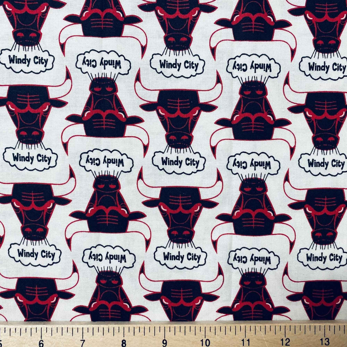 Show off your team pride with the Bulls Jas Stacked Vintage Logo Cotton Fabric by Camelot Fabrics! Featuring the iconic Chicago Bulls logo in a stacked vintage design, this fabric is perfect for any basketball fan. A rare out of print fabric!