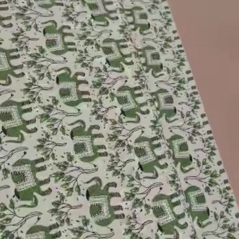 Green Elephant run cotton canvas print.