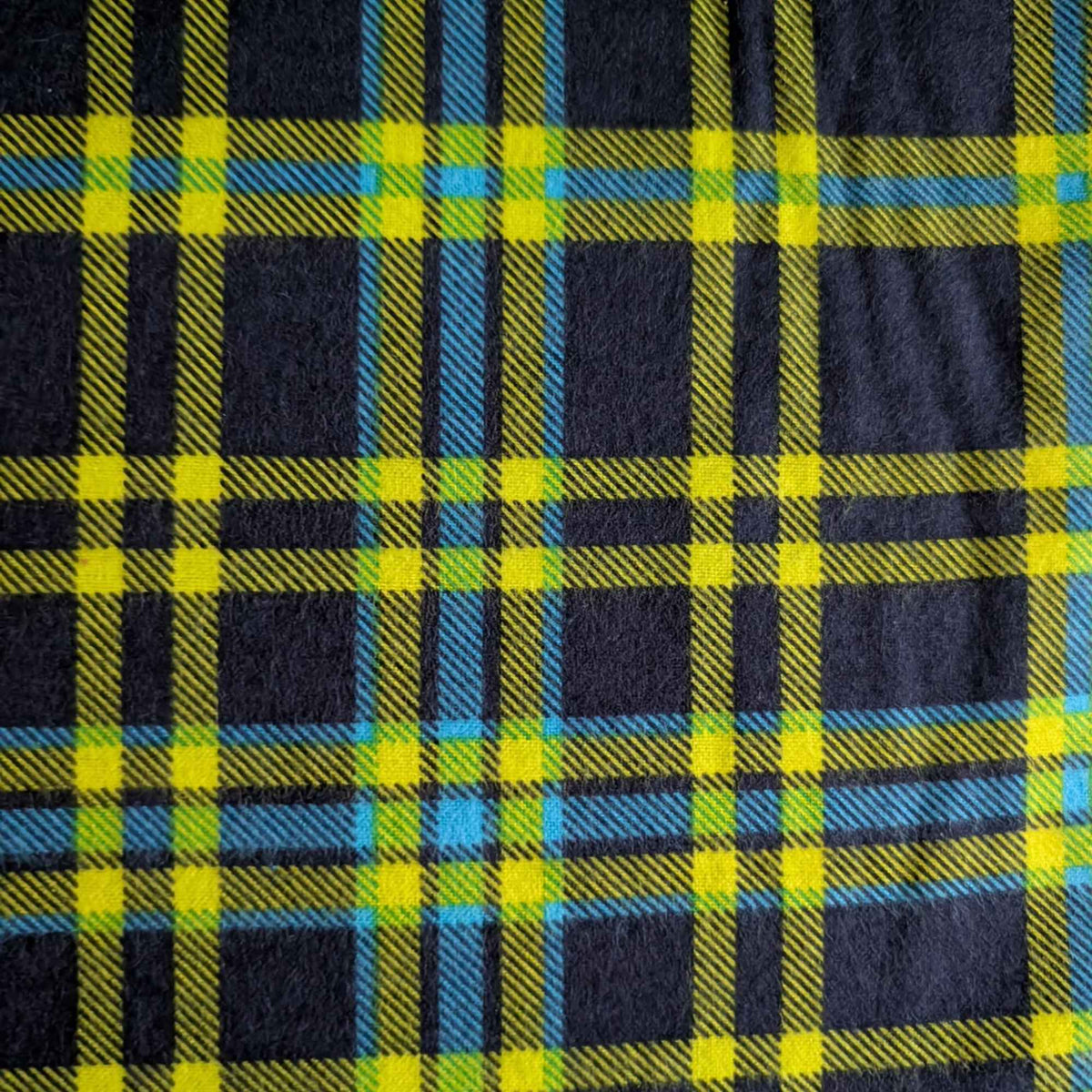 Add bold contrast and classic style to your sewing projects with this 100% cotton flannel fabric, featuring a vibrant lime green and navy plaid pattern. Soft, warm, and easy to work with, this high-quality flannel is an excellent choice for quilting projects and cozy crafts.