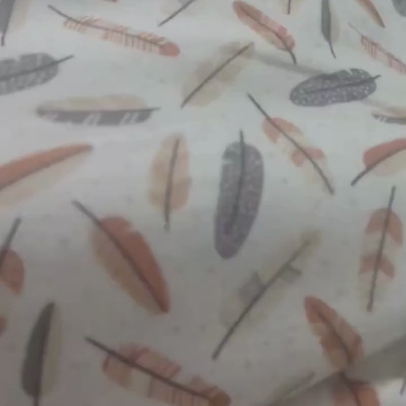 Snuggle up in style with our Brown, Grey and Tan Feathers FLANNEL on Cream. This premium flannel is brushed for a soft hand feel and features a playful toss of feathers on a cream background. Perfect for creating cozy bath robes, loungewear, and blankets!