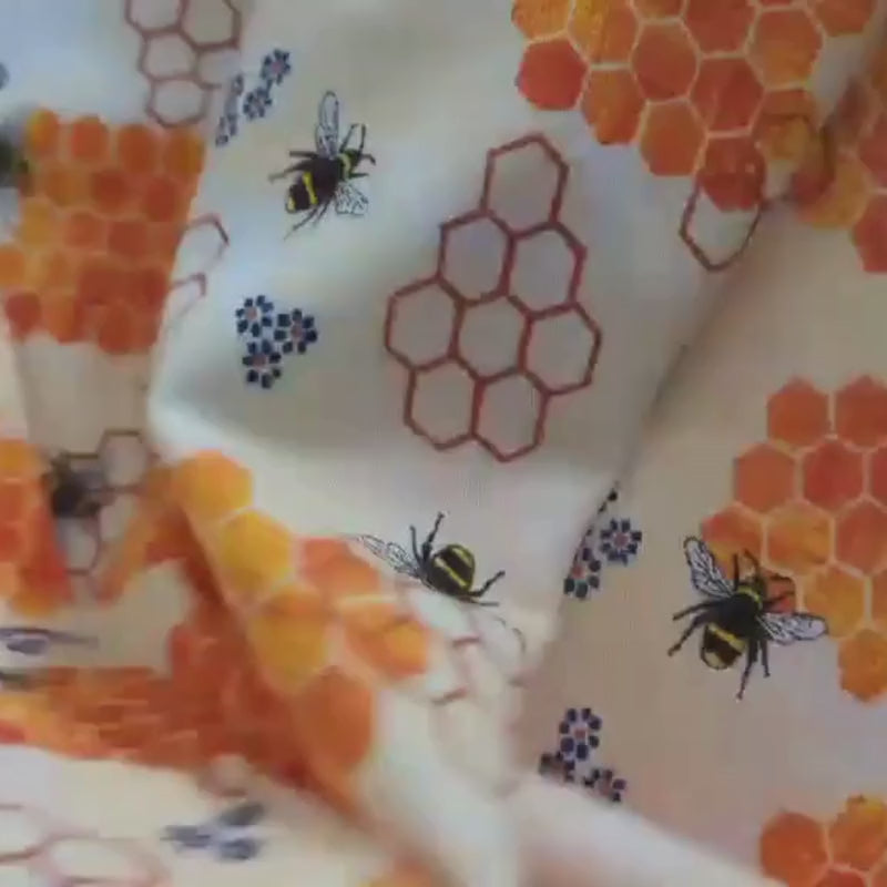Honeycomb and Bees FLANNEL on Cream
