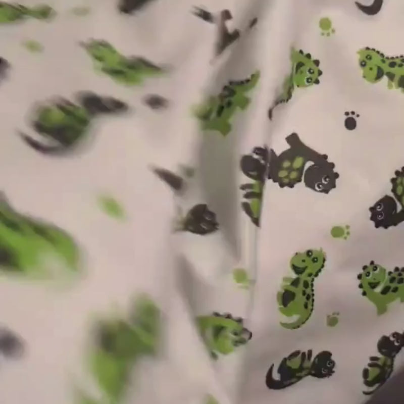 Get ready to snuggle up with your little one in this adorable Baby Dinosaur FLANNEL! Featuring cute gray and green baby dinosaurs on a soft white background, this fabric is perfect for any nursery project. Stay cozy and stylish with this playful flannel.