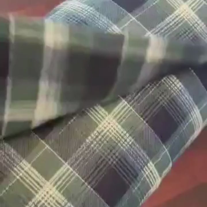 A green and black plaid flannel fabric for sewing warm and cozy pajamas. This 100% cotton FLANNEL would be great for many craft or baby projects. Try a receiving blanket or burp rag! High quality fabric. Beautiful light color plaid.