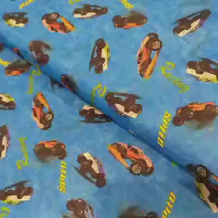 PUL, Laminated Fabric, Diaper, Racing Cars on Blue