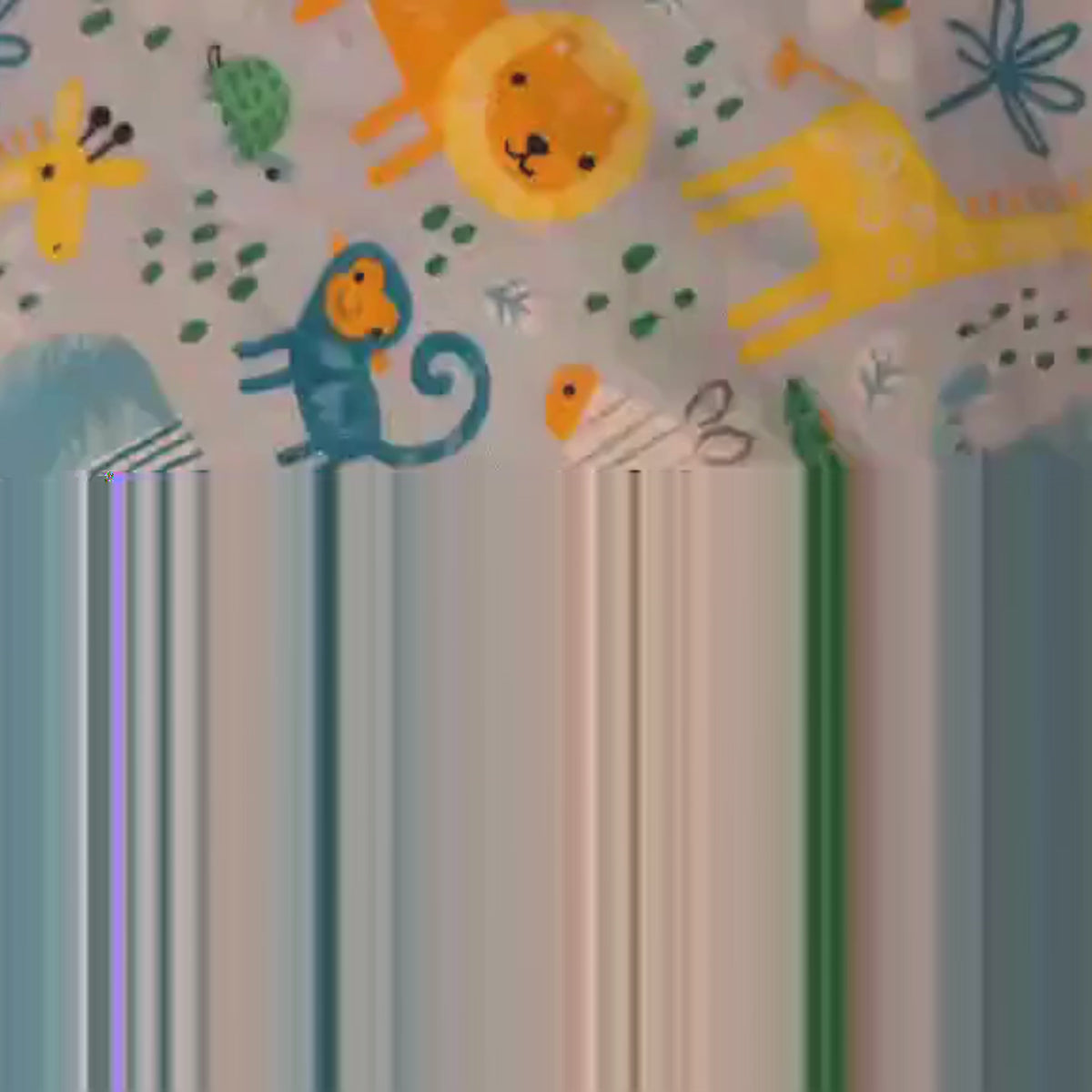 Design: Jungle animals and greenery in bright, kid-friendly colors